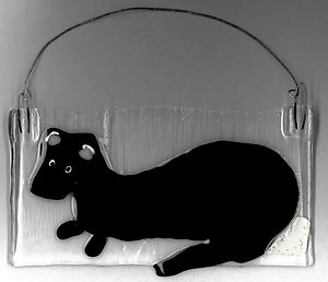Glass art, metal hanger. Each piece is unique and colors of the art might be different from one to an other.