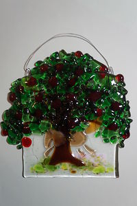 Glass art, metal hanger. Each piece is unique and colors of the art might be different from one to an other.